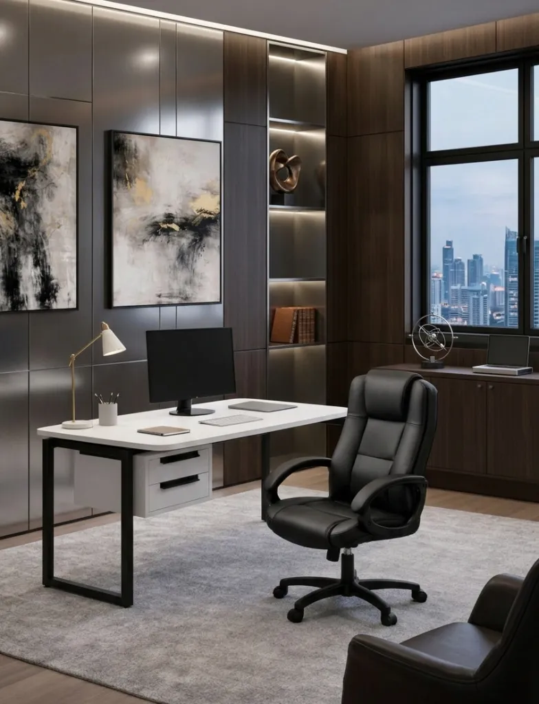 Высокая спинка формирует солидный силуэт и одновременно поддерживает позвоночник. Это помогает сохранить правильную осанку в течение длительного рабочего дня, снижает риски развития проблем со здоровьем.