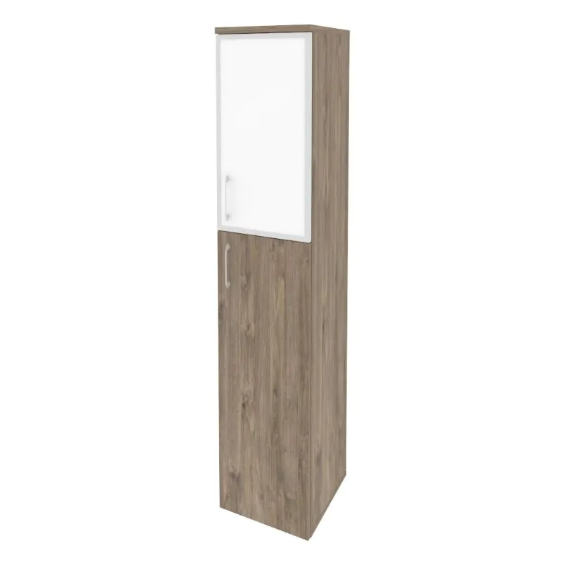 — Быстрая доставка Шкаф высокий узкий правый (1 средний фасад ЛДСП + 1 низкий фасад стекло лакобель белое в раме) ONIX O.SU-1.7R(R) white по Москве;