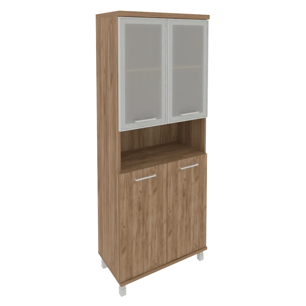 — Быстрая доставка Шкаф высокий широкий (стекло в раме) First KST-1.4R (дуб Табак) по Москве;