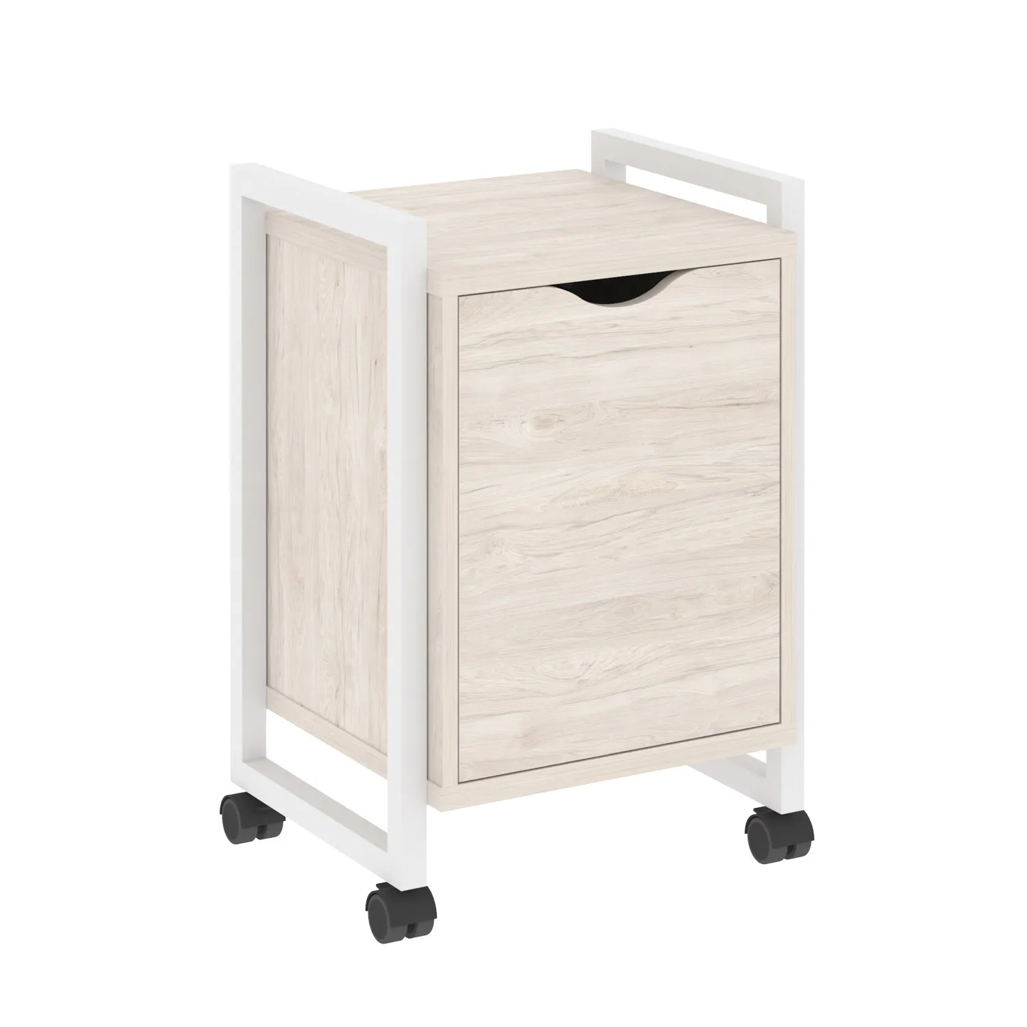 — Быстрая доставка Тумба на колесных опорах с распашным фасадом VR.L-T2.K (денвер светлый/белый) по Москве;