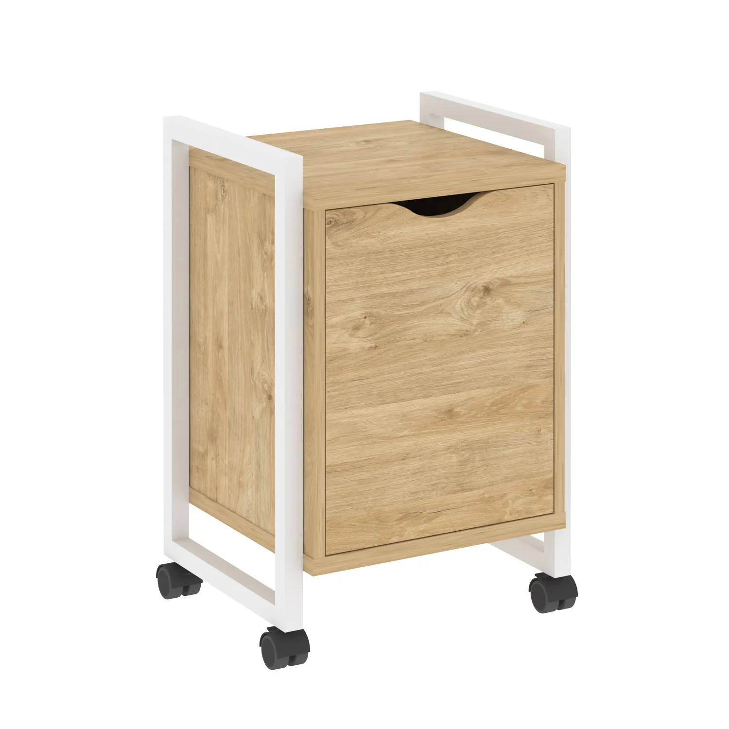 — Быстрая доставка Тумба на колесных опорах с распашным фасадом VR.L-T2.K (тиквуд светлый/белый) по Москве;