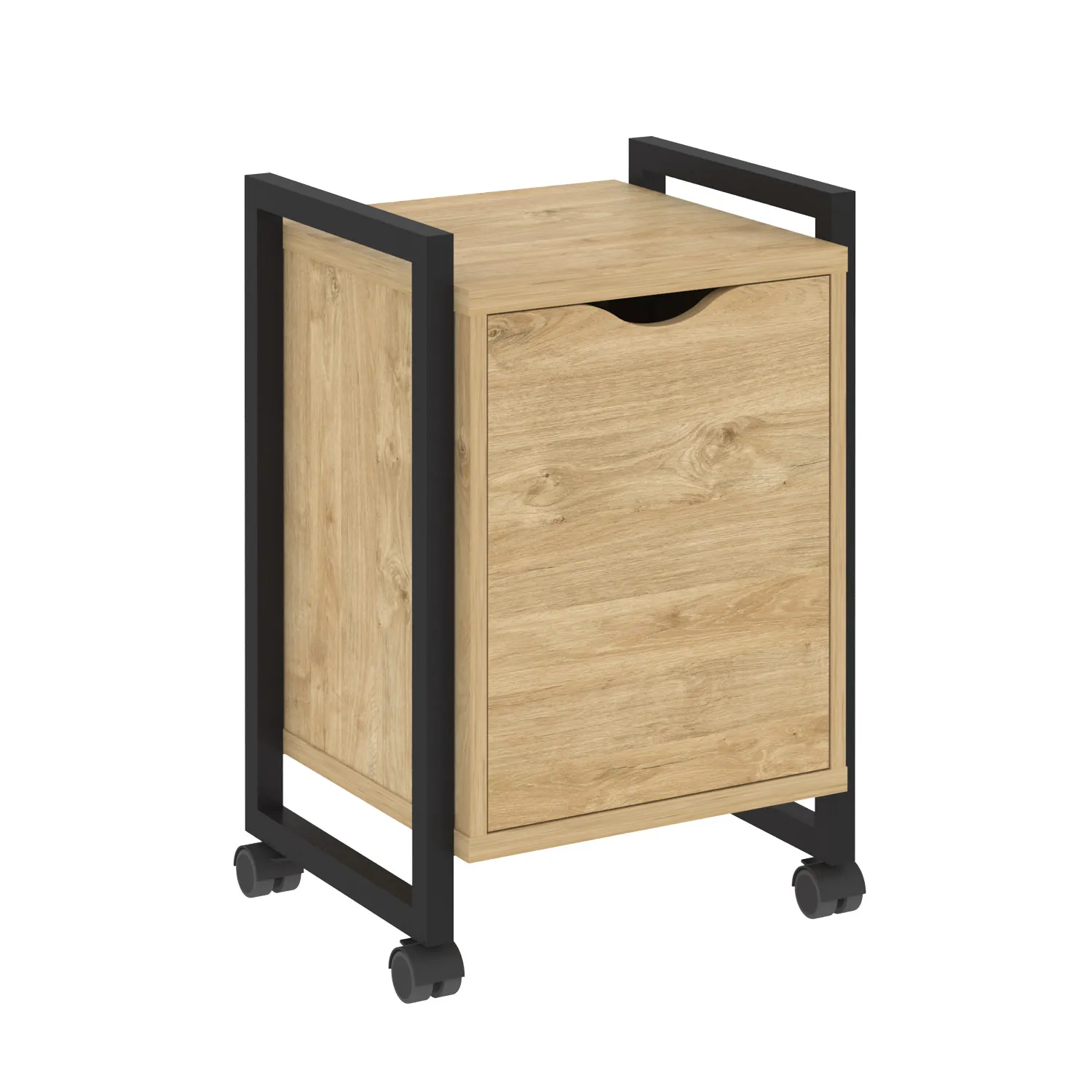— Быстрая доставка Тумба на колесных опорах с распашным фасадом VR.L-T2.K (тиквуд светлый/черный) по Москве;